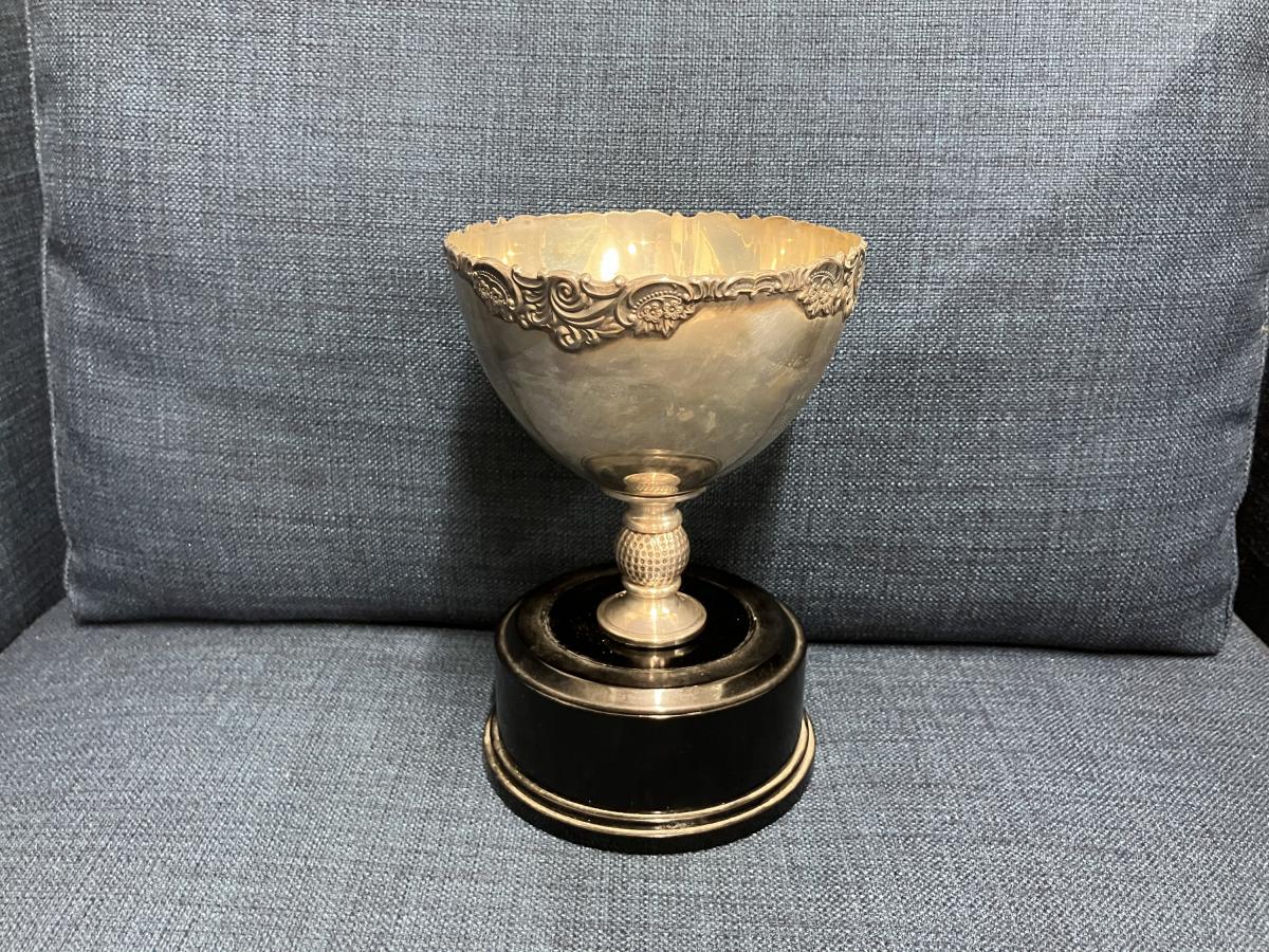 トロフィーのお買取です。こちらは銀製。昨今の資材高騰により銀を使ってトロフィーを作るということはあまりなくなってきましたが、特にバブル期の1990年前後には結構こういったお品物がございました。古い時代のゴルフのトロフィーなどございましたら、ぜひご確認ください。おかげさまで13周年!金・銀・プラチナのお買取りもおたからや箕面店へ!