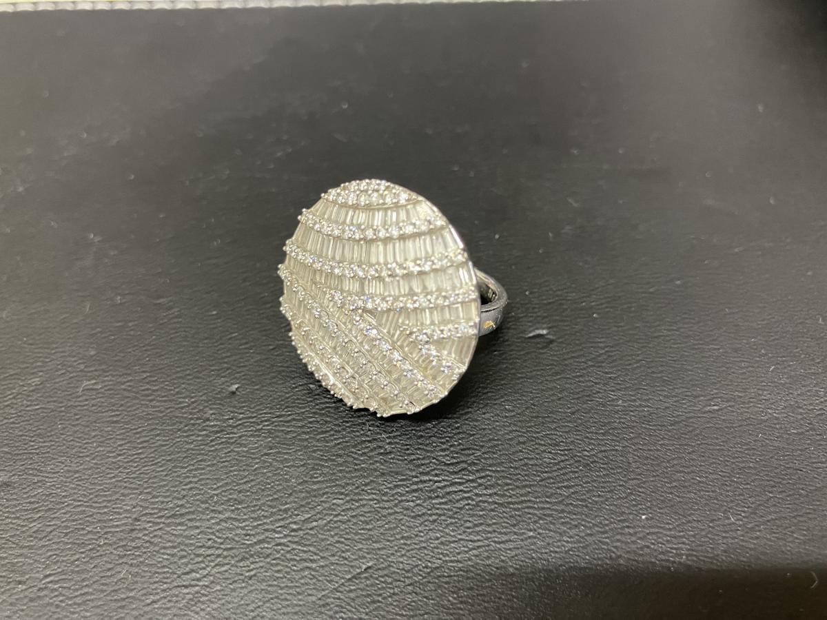 リングのお買取です。こちらはK18ホワイトゴールド。ダイヤモンドをあしらったデザインとなっております。メレーですが、使われているダイヤは全部で3カラット。かなりの数のダイヤでありデザインも複雑ですが、しっかりと査定させて頂きます。ぜひおまかせください。おかげさまで13周年!金・プラチナ・ダイヤモンドのお買取りもおたからや箕面店へ!
