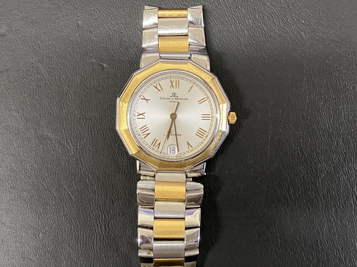 ボーム&メルシエのお買取です。こちらはメンズのクオーツ。ボーム&メルシエとは1830年に創業されたスイスの歴史ある時計メーカー。世界で6番目に古いブランドとされています。今回お買取させて頂いたのはリビエラというコレクション。電池交換も1年ほど前にされており、しっかりと稼働しております。どのようなメーカー、ブランドでもおまかせください。おかげさまで14周年!ボーム&メルシエのお買取りもおたからや箕面店へ!