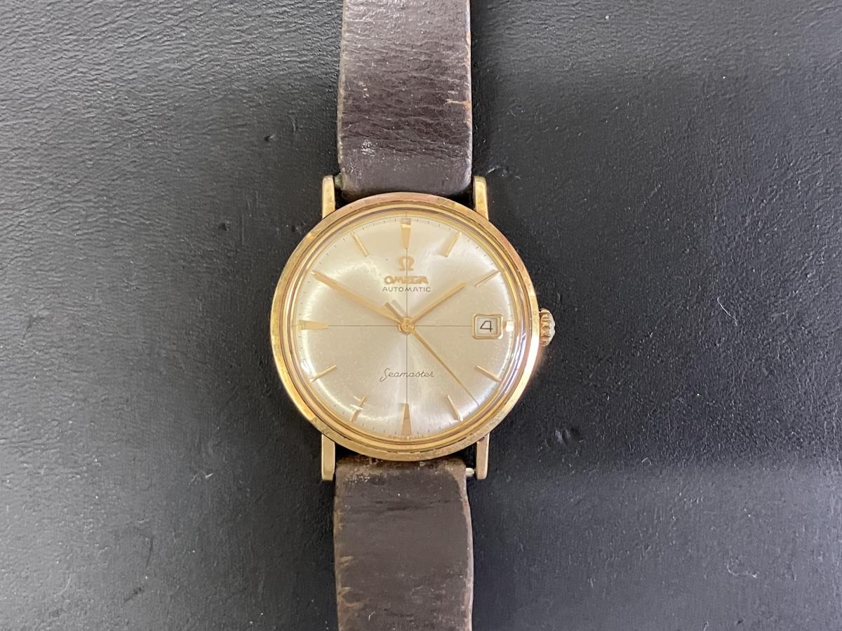 オメガのお買取です。こちらはシーマスター。メンズの自動巻きです。かなり古いモデルであり、おそらく70年代当たりではないかと思います。ですが、さすがは自動巻き。しっかりと時を刻んでおります。古い時計もおまかせください。おかげさまで14周年!オメガのお買取りもおたからや箕面店へ!
