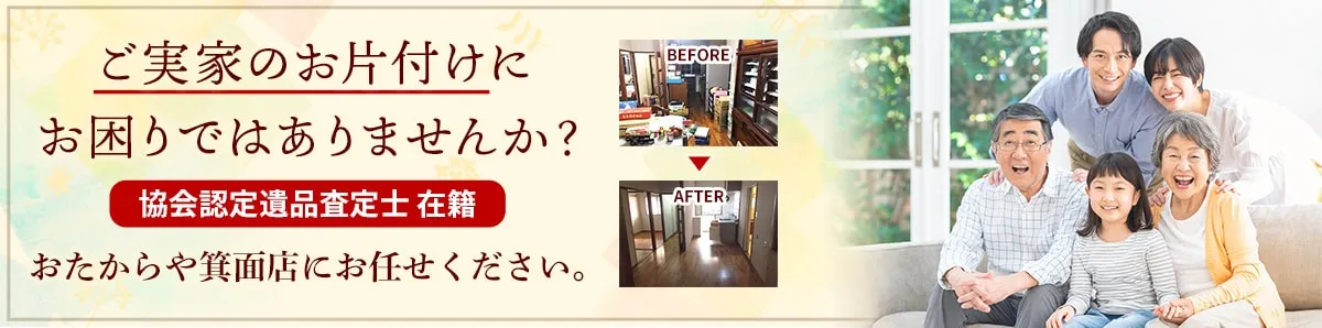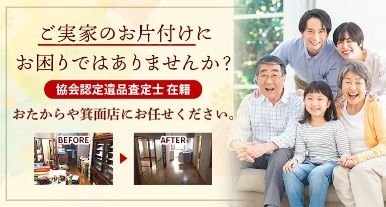 遠方にお住まいであったり、仕事があったりと、お忙しくてお時間が取りづらい方でも、安心しておたからや箕面店に遺品整理をお任せください。お客様のご負担は最小限に、迅速かつ丁寧な作業を行います。